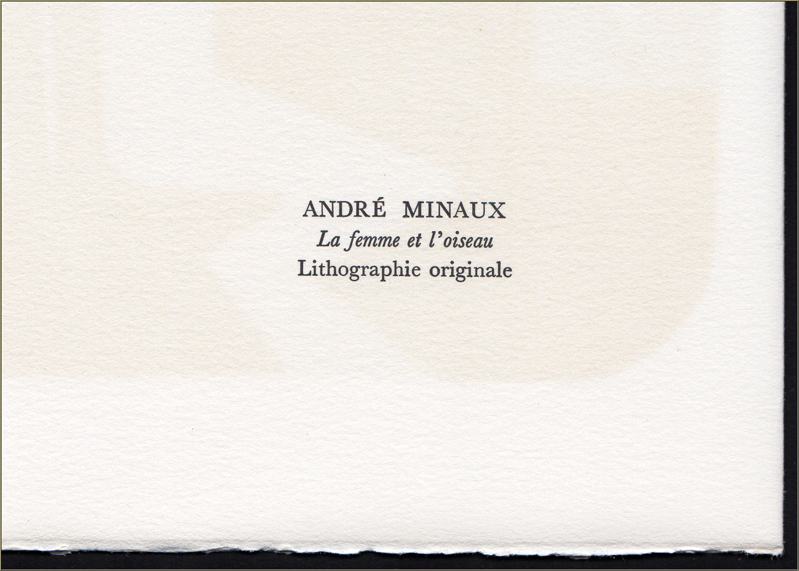 Rückseitig typografisch bezeichnet: "André Minaux - La femme et l'oiseau - Lithographie originale"