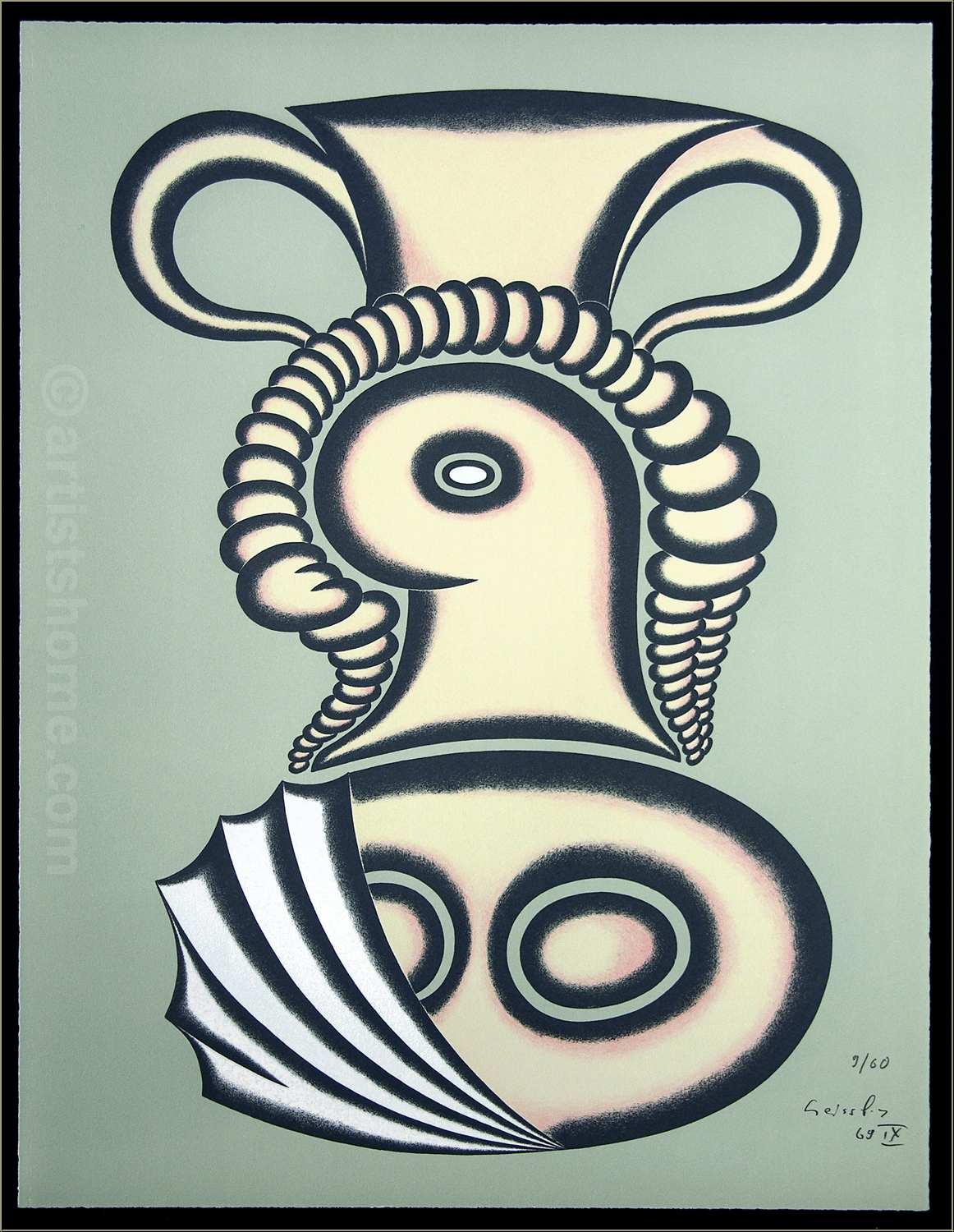 Arnold Leissler: 'Vaso contesta' 1969, Original-Lithographie mit Vase / Krug, signiert - Bilder | Druckgrafik