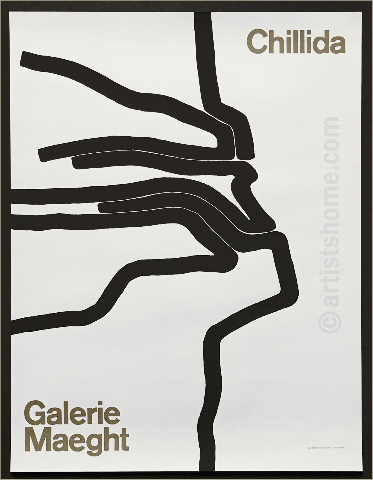 Frühes, originalgrafisches Ausstellungsplakat Chillidas, für das die Original-Lithographie « Affiche N°87 » (van der Koelen 64002) verwendet wurde. In dieser Ausstellung in Paris wurden damals Skulpturen und Collagen des spanisch-baskischen Künstlers gezeigt.