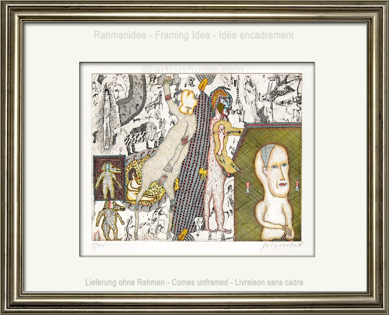 Ungewöhnlich üppige Radierarbeit des österreichischen Künstlers zum Thema "Reinigendes Ehegewitter", handsigniert