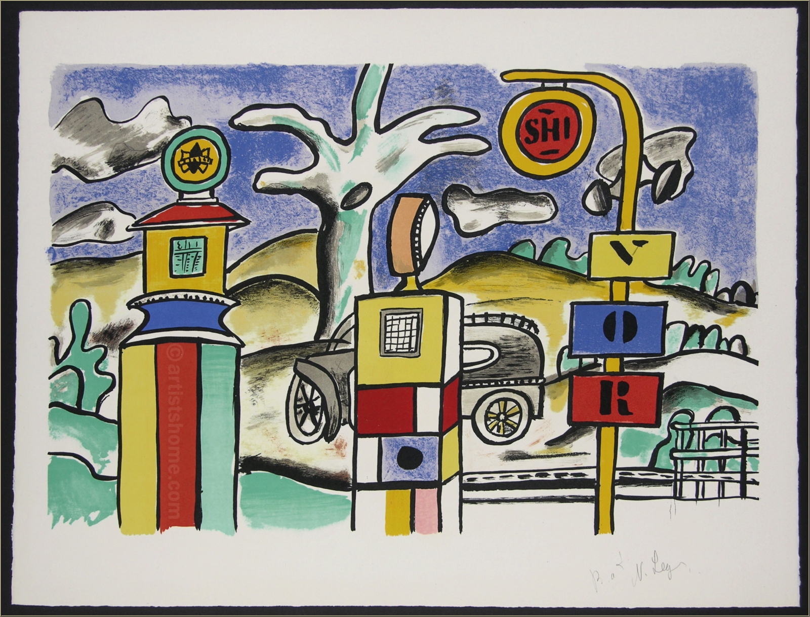Farblithographie "La pompe à essence" (Die Zapfsäule) für Légers letztes großes Projekt vor seinem Tod, seltener Probedruck