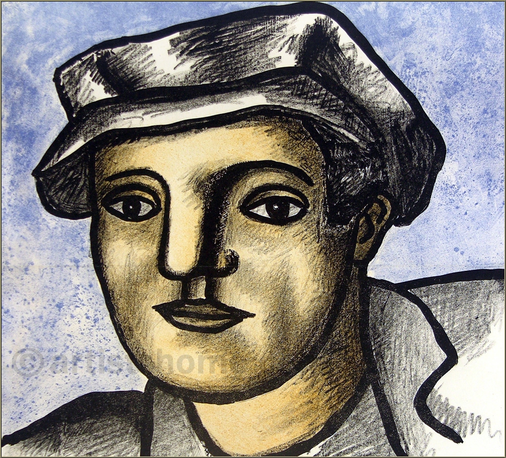 Unabhängig davon ist dies sicherlich eine der eindringlichsten Grafiken Légers: das Plakat steht in einer großen Grafikmappe seit einigen Tagen hier im Büro, und der intensive, etwas melancholische Blick des jungen Mannes scheint einen auf Schritt und Tritt zu verfolgen. Nachdem sich Fernand Léger 1950 dem eher luftig-leichten "Le Cirque" gewidmet hatte, war es ihm im Jahr darauf offensichtlich ein Anliegen, sich ernsteren, gesellschaftspolitischen Themen zuzuwenden. Die in dieser Zeit beginnende zweite industrielle Revolution Frankreichs und ihr Einfluss auf die Arbeiterschaft scheinen Léger zu diesem ausdrucksstarken Bild bewogen zu haben.