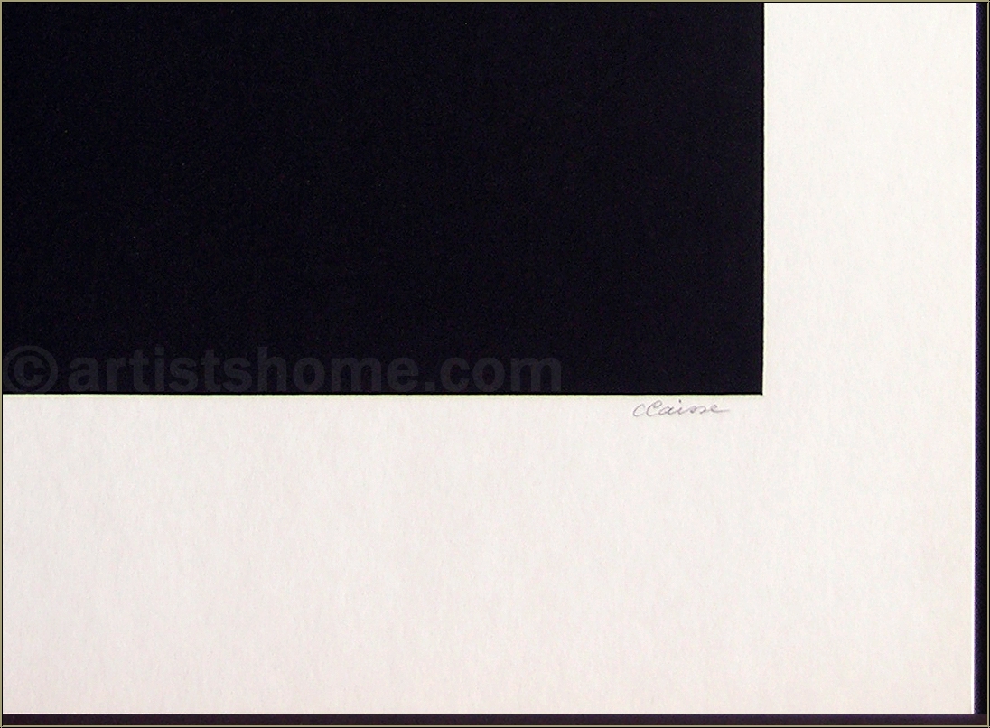 Konstruktivismus mit dem Kreis als grundlegender geometrischer Form. Für diese Originalgrafik hat Geneviève Claisse je eine grüne, dunkelblaue und weiße Kreisfläche übereinander gelegt und auf Schwarz gestellt. Sie erinnert damit an die 70er Jahre mit ihrem Space Age-, Panton- und POP Art-Design und darf sich zweifellos zu den Klassischen Modernen der abstrakten Kunst zählen. Handsigniertes Exemplar in nahezu makellosem Zustand!