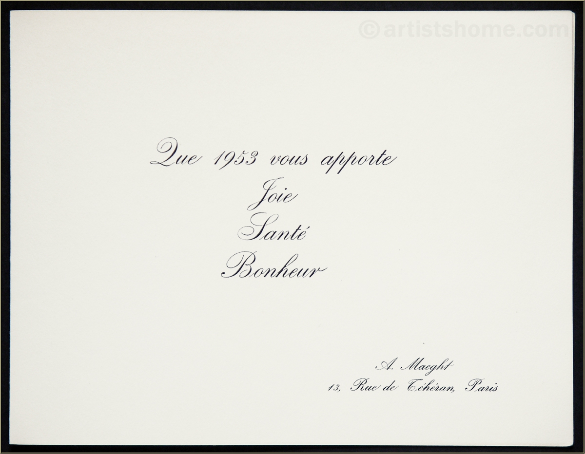 Bild 3: Vorderseite der Neujahrskarte mit den Wünschen der Galerie Maeght für 1953