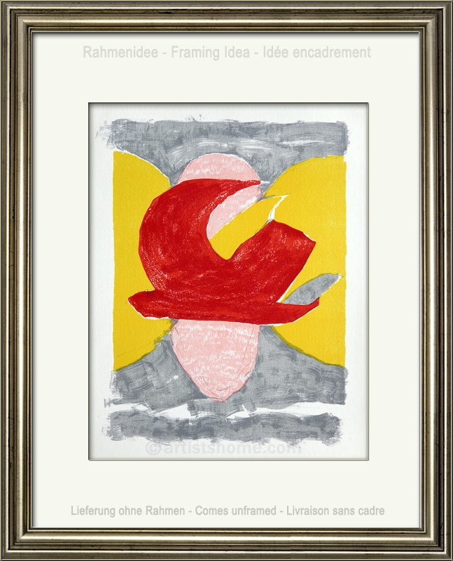| "Großer roter Vogel", Farblithographie für den Band "Abstieg zur Hölle", Probedruck auf Montval-Bütten Art.-Nr.: BRA-61-02 Lieferzeit: Preis: 550,00 € zzgl. Versand Vorkassepreis: 522,50 € Preis inkl. 5% Sofort-Skonto bei Bezahlung per Vorkasse Überweisung. Der reduzierte Preis wird Ihnen im Warenkorb angezeigt. Basis: Umrechnungskurse der EZB vom 29.12.2025 zzgl. Versand (inkl. MwSt., differenzbesteuert gem. §25a UStG, kein Ausweis der MwSt.) |