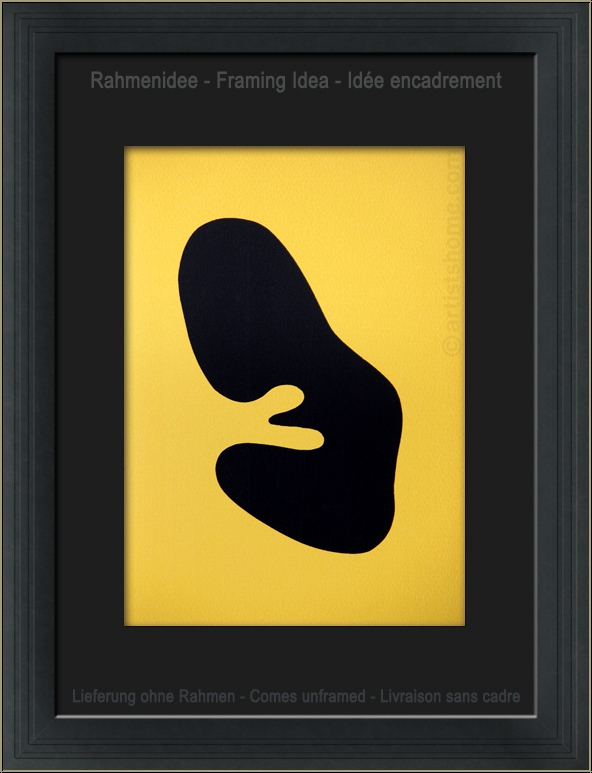 Hans Arp: anmutiger Holzschnitt, schwarze Form mit sanften Rundungen, einem Fötus gleich (Lieferung ungerahmt)