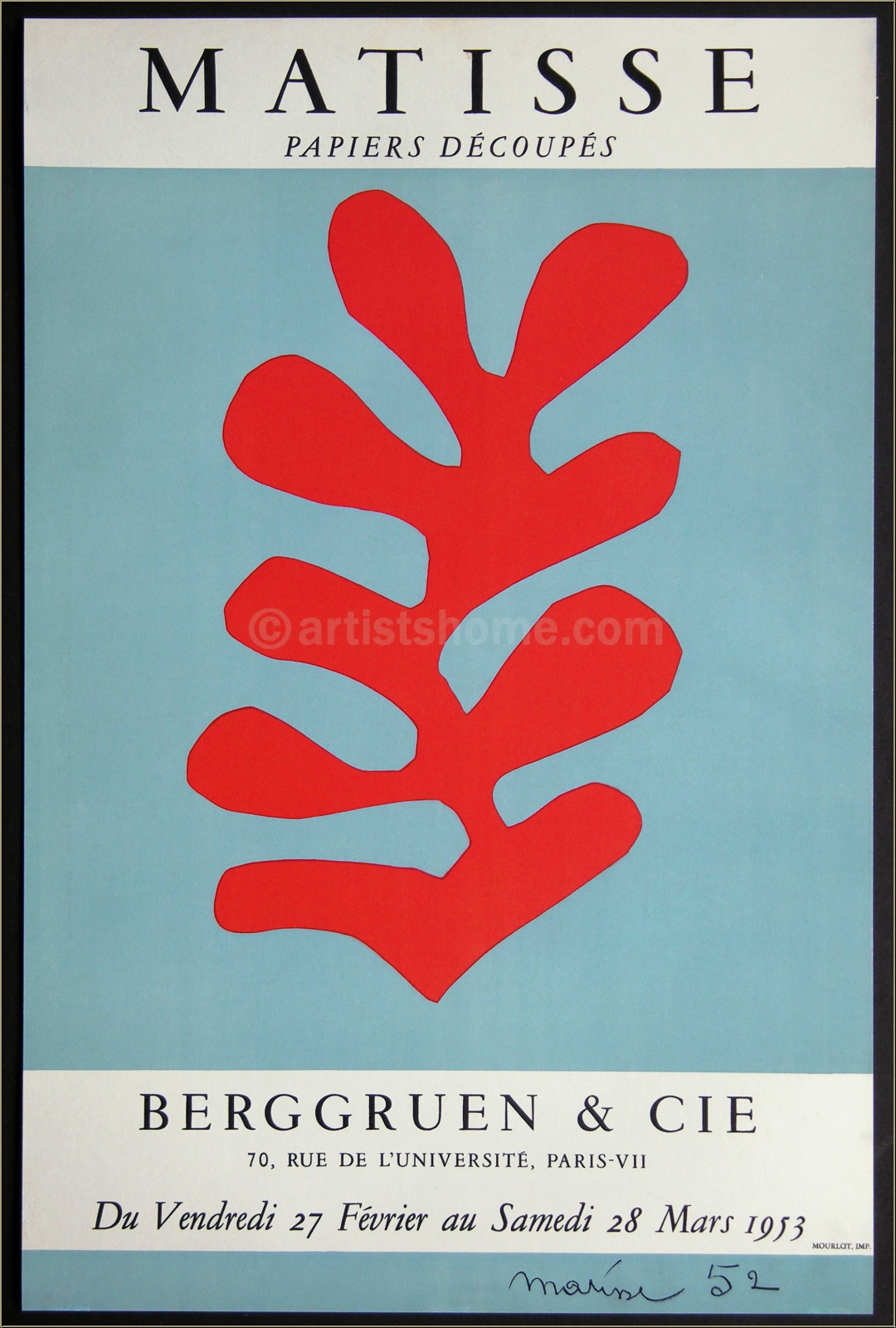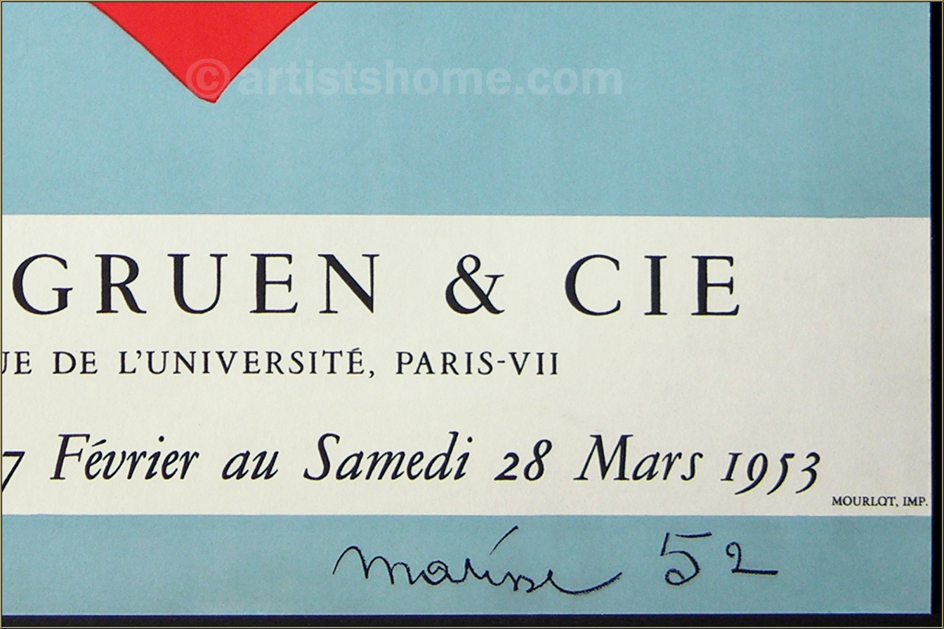 Details:Matisse - Papiers découpés, Berggruen & Cie, 1953 Ausgesprochen seltenes Originalplakat mit der Farblithographie "Algue rouge sur fond bleu ciel" nach einer Papiercollage für die Ausstellung des Künstlers bei Berggruen, Paris