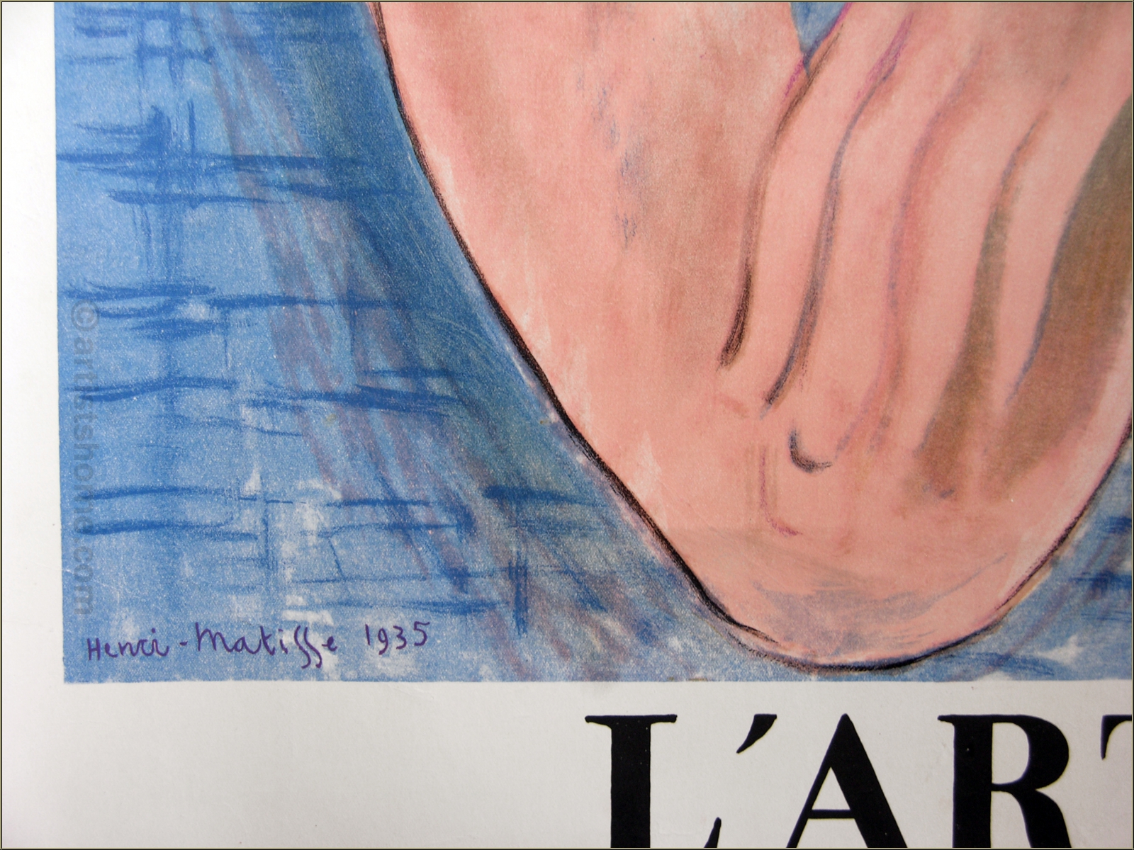 L'art indépendant au Petit Palais, 1937 - Erstes Ausstellungsplakat von Matisse bei Mourlot - es begründete die viele Jahre lang andauernde, enge Zusammenarbeit zwischen dem Künstler und Fernand Mourlot, der diese Farblithographie nach dem gleichnamigen Gemälde von 1935 im Auftrag von Matisse erstellte.