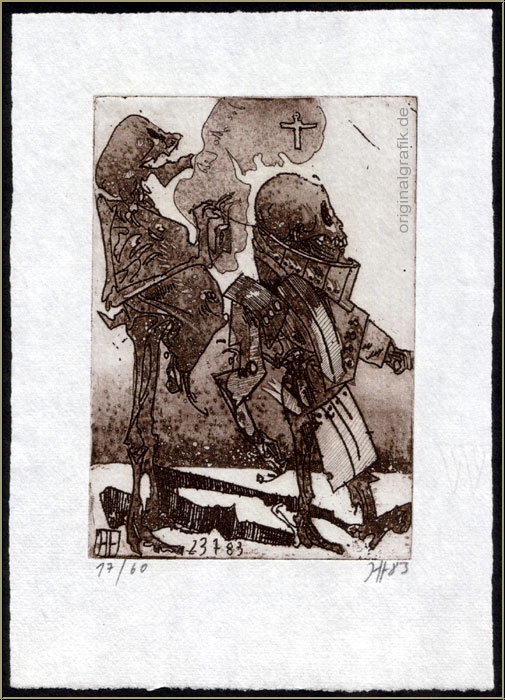 | Handsignierte, charakteristische Radierung in Umbratönen aus der Totentanz-Folge "Nihil ut umbra" Art.-Nr.: JAN-83-07 Lieferzeit: Preis: 375,00 € zzgl. Versand Vorkassepreis: 356,25 € Preis inkl. 5% Sofort-Skonto bei Bezahlung per Vorkasse Überweisung. Der reduzierte Preis wird Ihnen im Warenkorb angezeigt. Basis: Umrechnungskurse der EZB vom 29.12.2025 zzgl. Versand (inkl. MwSt., differenzbesteuert gem. §25a UStG, kein Ausweis der MwSt.) |
