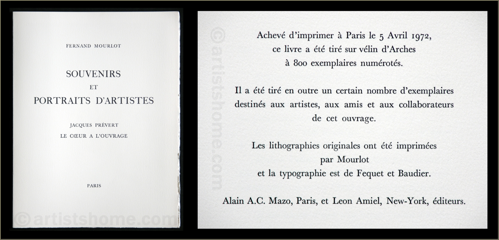 Verleger: Alain C. Mazo, Paris u. Léon Amiel, New York, 1972