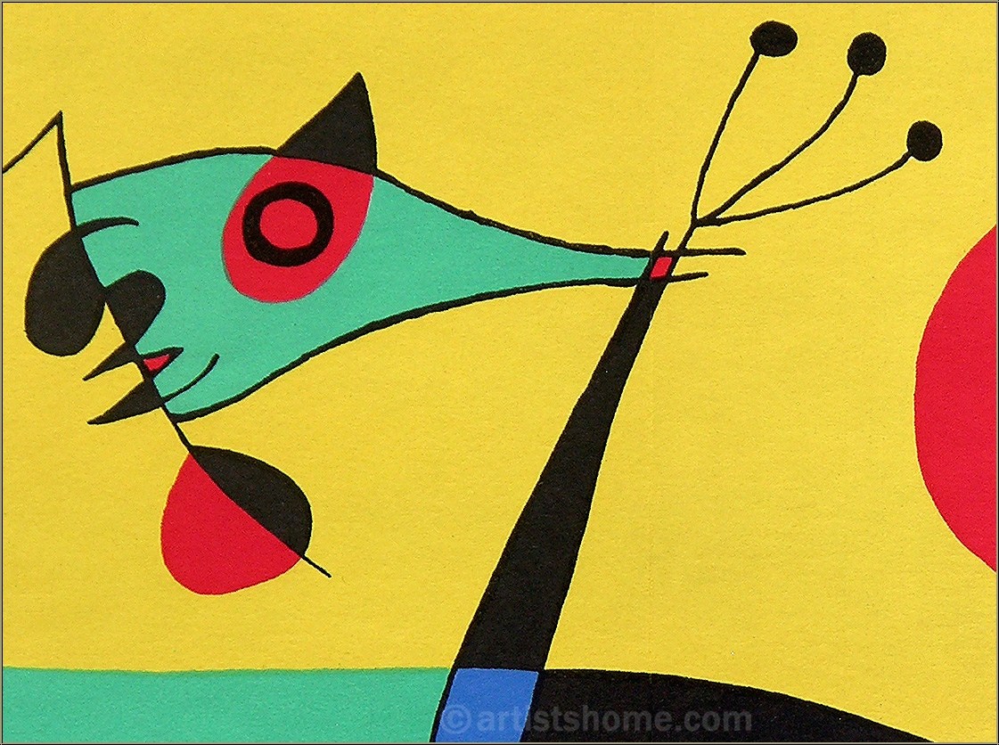 Hinweis: Dies ist KEIN Kunstdruck, wie sie zuhauf im Internet angeboten werden, sondern die eigenhändig von Joan Miró gearbeitete Originallithographie (Steindruck), wie sie exakt so auch im Werkkatalog verzeichnet ist!