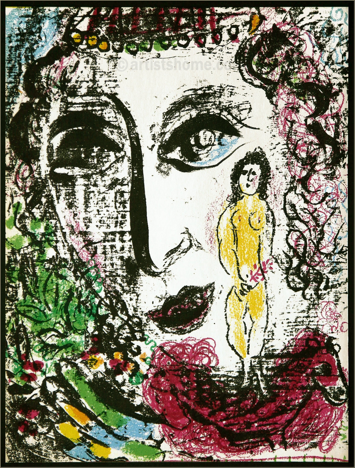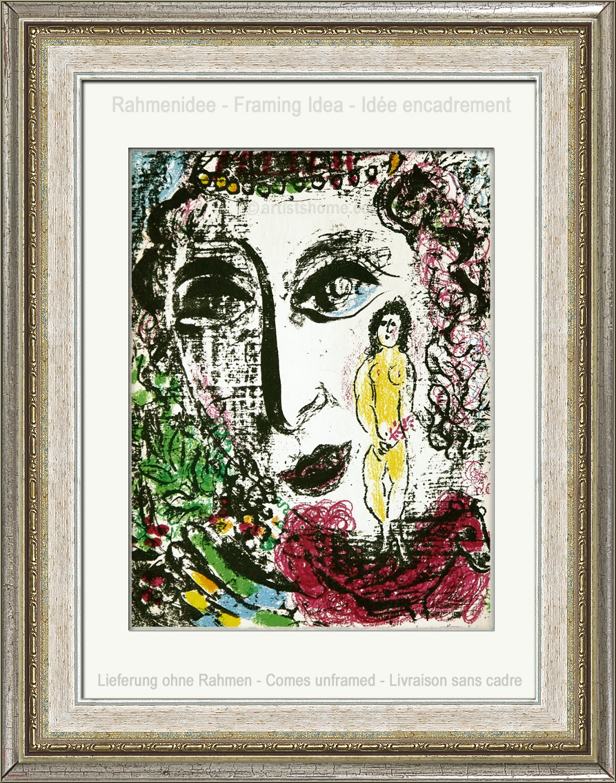 Details:"Auftreten im Zirkus" Wie viele Künstler seiner Zeit war Marc Chagall von der fröhlich-bunten Welt des Zirkus fasziniert, aber auch von ihren besonderen Menschen mit atemberaubendenden Begabungen und bildschönen Körpern. So portraitierte er in vielen Bildern mit Hingabe Akrobaten, Dompteure, Clowns und Seiltänzerinnen. Hier hatte es ihm offensichtlich eine hübsche Kunstreiterin angetan, die er auf ihrem Pferd stehend zeichnete und vor ein übergroßes Portrait platzierte.