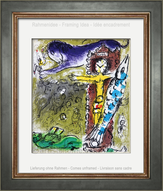 Chagall: Original-Lithographie mit Jesus, Pendeluhr, Fisch und Esel (Lieferung ungerahmt) - Lithographien