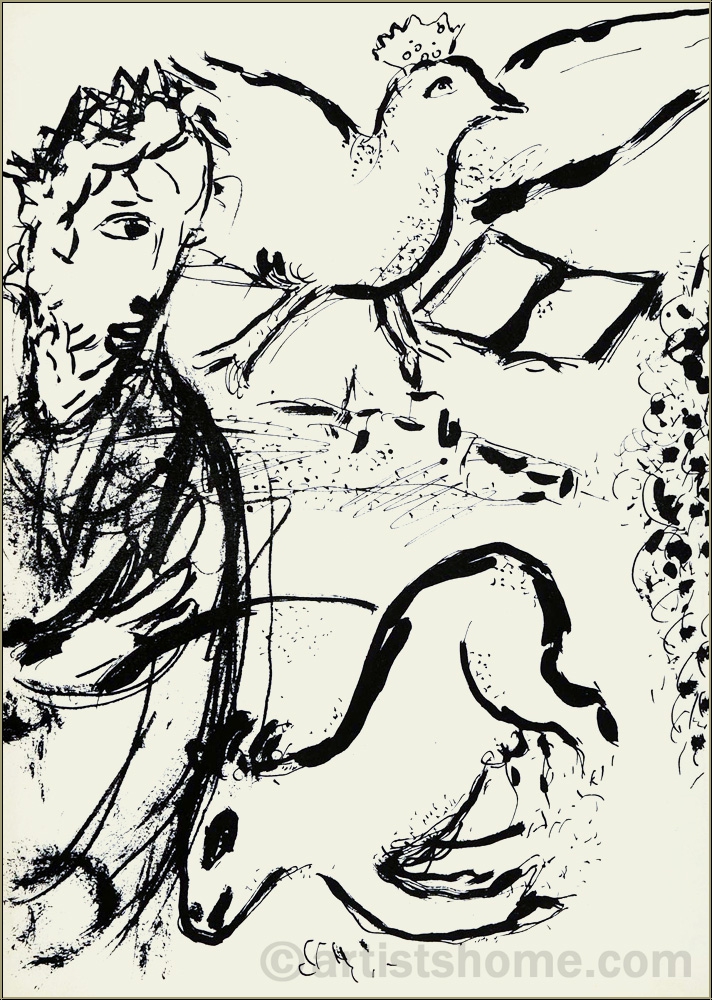 Marc Chagall: David mit der Harfe, 1956, Original-Lithographie Bibel