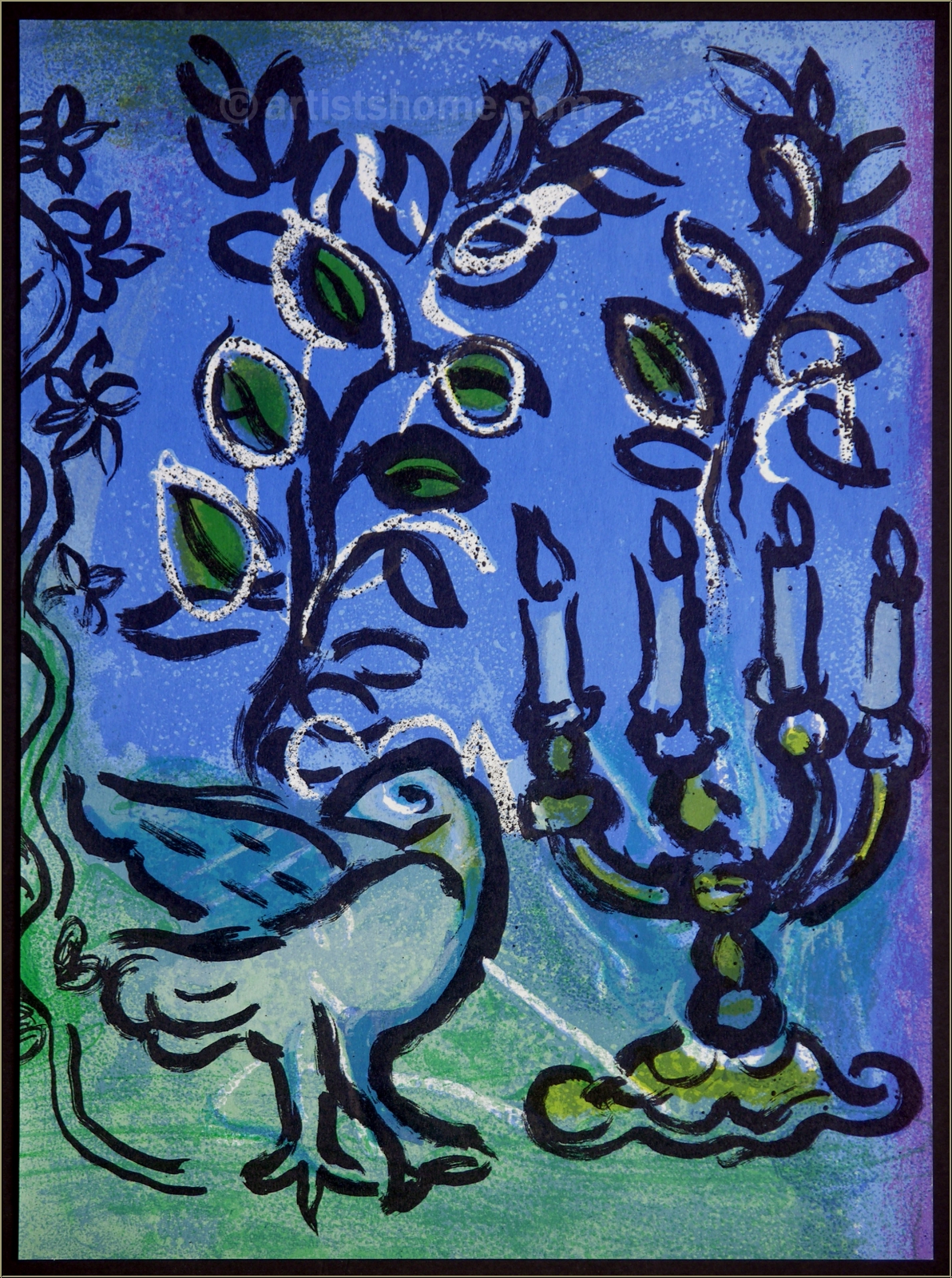 Marc Chagall: Der Kerzenleuchter, 1962, Lithographie Jerusalem Fenster