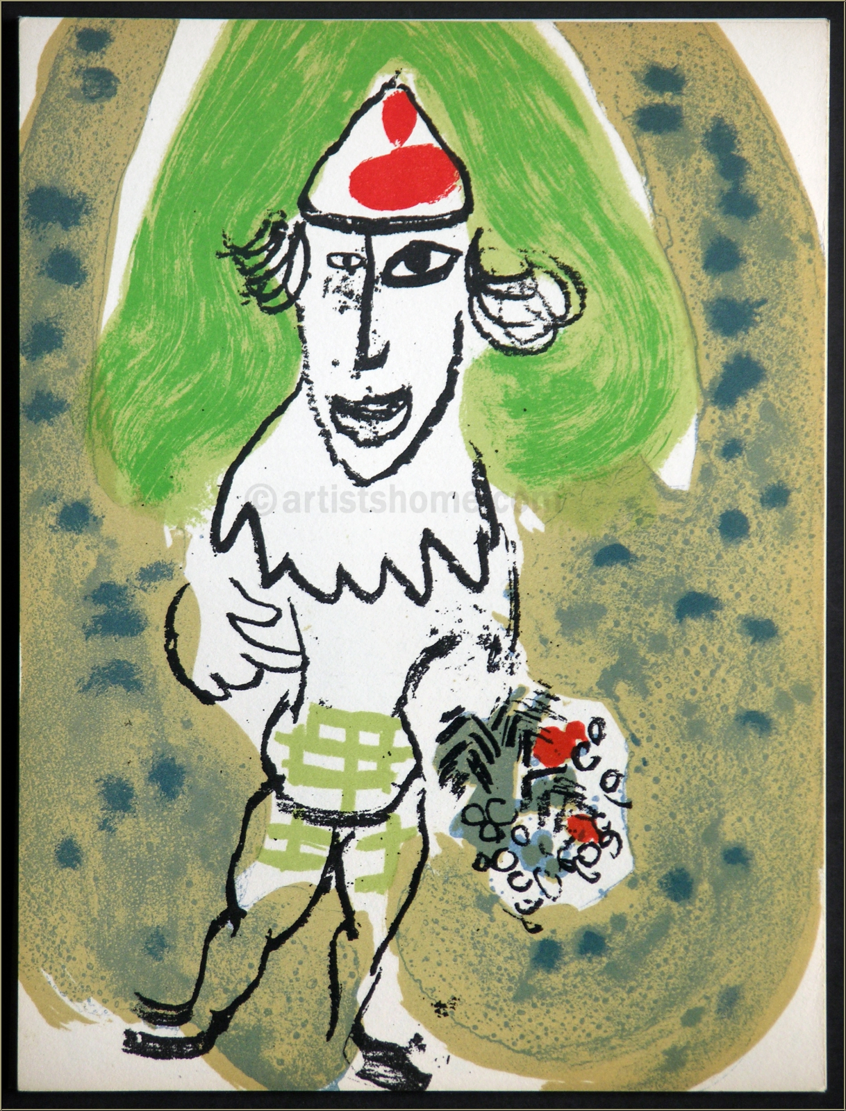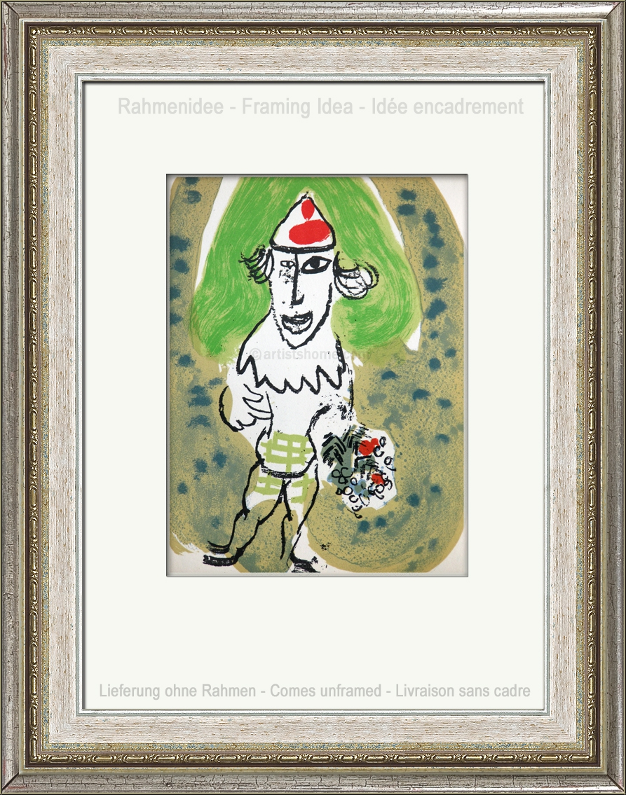 Marc Chagall: "Der grüne Clown", 1966 Original-Lithographie auf Bütten