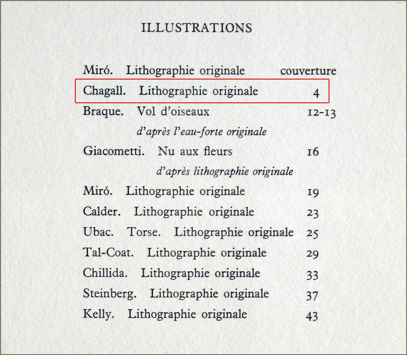 Diese Originalgrafik wurde zusammen mit Arbeiten weiterer Künstler als Frontispizblatt auf Büttenpapier für den Ausstellungskatalog "Graphik, Lithographien und illustrierte Originalbücher des Maeght-Verlags" in London herausgegeben und ist heute wegen ihrer Seltenheit ein gesuchtes Sammlerstück.