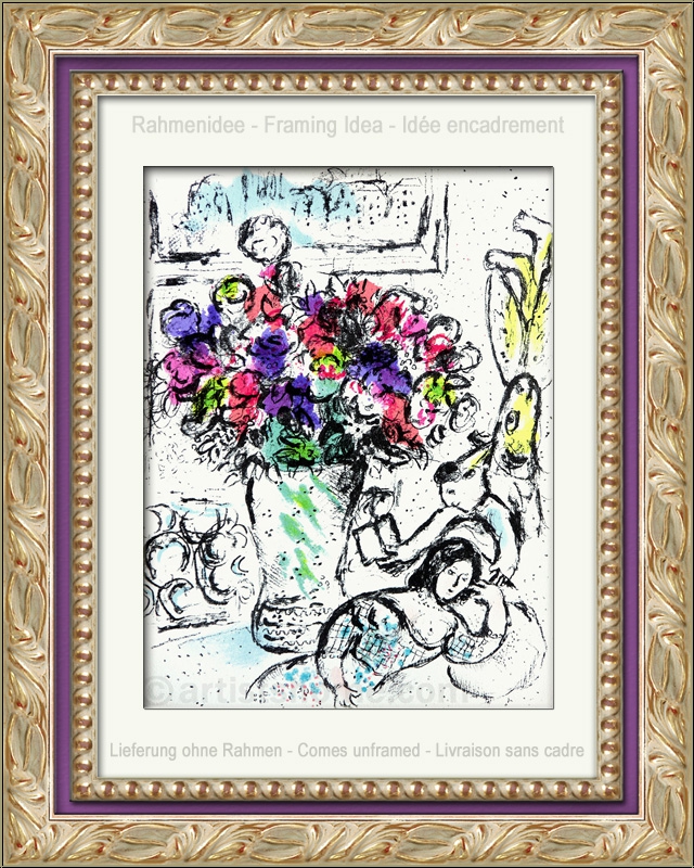 Marc Chagall: Die Anemonen, Original-Lithographie (Frontispiz) Bütten, Blumenstrauß - Bilder | Werke | Drucke