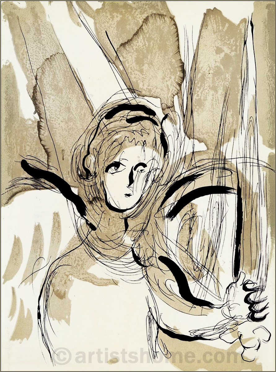 Neben den Propheten, Erzvätern, Königen und der Moses-Geschichte hat Marc Chagall in seinem ersten Bibelzyklus auch die Engel bedacht - dies ist eines von insgesamt 4 Engelsmotiven.