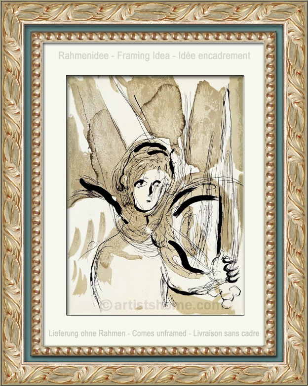 Marc Chagall: Engel mit Schwert, Verve Bibel 1956, Original-Lithographie - Bibelillustrationen | Lithographien