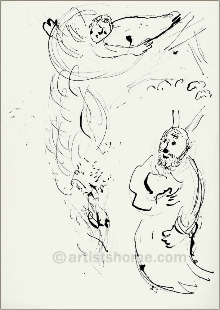 Original-Farblithographie aus Chagalls berühmtem Bibelwerk zu den 10 Geboten