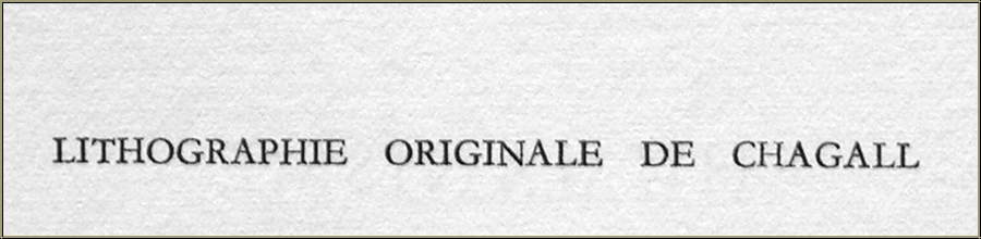 Auflage | Papier: Gedruckt in kleiner Auflage, eines der unsignierten Exemplare auf cremefarbenem Glastonbury Antique Laid (Büttenkarton). Laut Werkverzeichnis existieren nur einige wenige signierte Exemplare mit breiterem Rand, die für Chagall reserviert waren.