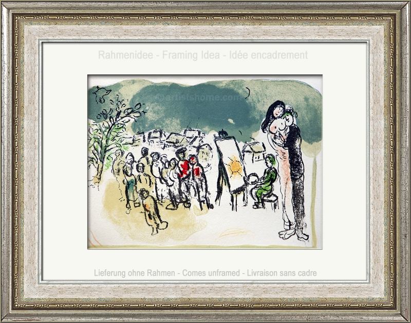 Marc Chagall: Original-Lithographie 'Hommage à Julien Cain' Liebespaar und Maler 1968 - Werke | Originaldrucke