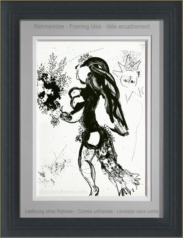 Marc Chagall: Original-Lithographie 'L'offrande' (Das Geschenk) 1960, Frau mit Blumenstrauss, Sonne - Drucke