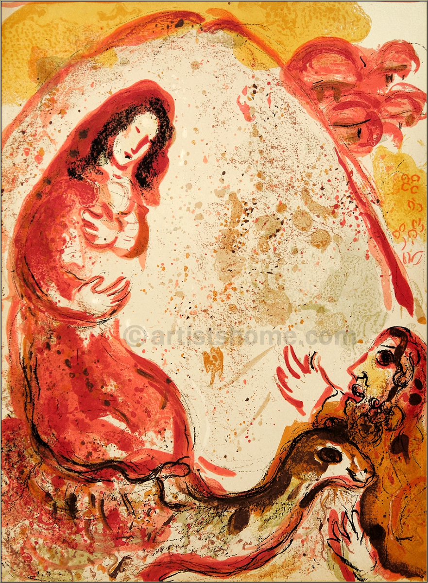 Marc Chagall: Rahel entwendet die Götzenbilder ihres Vaters, Bilder zur Bibel 1960 - Originale | Druckgrafiken
