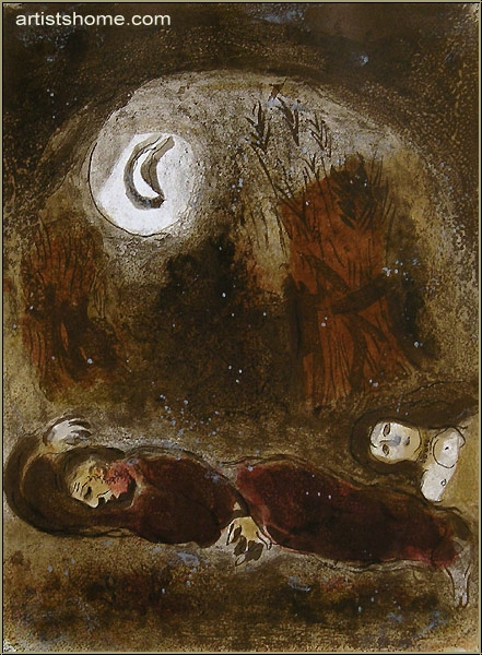 | | "Ruth zu Füßen des Boas" (Mourlot 248) - hochwertig gerahmtes Einzelstück - Original-Lithographie von Marc Chagall für seinen berühmten Band "Bilder zur Bibel". Dies ist KEIN Kunstdruck (z.B. Offset- oder Grano-Lithographie aus einer "Limitierten Luxus-Edition", wie sie zuhauf angeboten werden), sondern die Original-Lithographie aus Chagalls Bibel II, wie sie exakt so auch im maßgeblichen Werkverzeichnis vermerkt ist! | Originalauflage: | 6.500 unsign. Expl. + 50 num. u. sign. Expl. auf Arches Bütten | | Größe: | 35 x 26 cm (Darstellung = Blattgröße) | | Verleger: | Éditions de la Revue Verve, Teriade, Paris, 1960 | | Anmerkungen: | Das Blatt wurde von seinem Vorbesitzer geschmackvoll gerahmt: hochwertiger Holzrahmen, nach innen antikgold-rot abgesetzt, äußere Abmessungen: 57 x 46,5 cm, in strukturiertem Passepartout mit Schrägschnitt, rücks. staubdicht verklebt, Drahtaufhängung. Rücks. eine weitere, einfarbige Original-Lithographie (Mourlot 271); Bibelstelle(n), auf die sich das Blatt bezieht: Ruth 3, 7 ff. Chagall hat dem Kapitel der Ruth insgesamt 5 Illustrationen gewidmet - dies ist das 3. Motiv zu der Frau, die durch ihre Liebe, Treue und Beharrlichkeit zu Boas Ehefrau und somit zur Urmutter König Davids wird. | | Werkverzeichnis/ Referenz: | Mourlot, Fernand. Chagall Lithograph [II] 1957-1962, André Sauret, Monte Carlo 1963, Nr. 248 + 271 Sie erhaltenen zusammen mit Ihrem Blatt den vollständigen Auszug aus dem o.g. Werkkatalog, sowie zusätzlich zur Rechnung einen Identitätsnachweis (ohne Preisangabe), falls das Bild verschenkt werden soll. | Wenn Sie sich zum Kauf von Originalgrafik entschlossen haben, finden Sie hier nützliche Tipps, um nicht auf häufig als "Originale" angebotene Reproduktionen (Kunstdrucke) oder gar signierte Fälschungen hereinzufallen. | | Kundenbewertungen Bisher wurde noch keine Bewertung abgegeben. Bewertungen können nur von Kunden geschrieben werden, die den Artikel gekauft haben und eingeloggt sind. Ihre persönlichen Daten werden automatisch anonymisiert (Beispiel: "Jens H., Deutschland").  *Gültig für Lieferungen nach Deutschland bei Zahlung per PayPal. Bei Zahlung per Banküberweisung verlängert sich die Lieferzeit um 1-3 Tage ab dem Tag, an dem Sie überwiesen haben. Lieferzeiten für andere Länder sowie Informationen zur Berechnung des Liefertermins finden Sie hier |