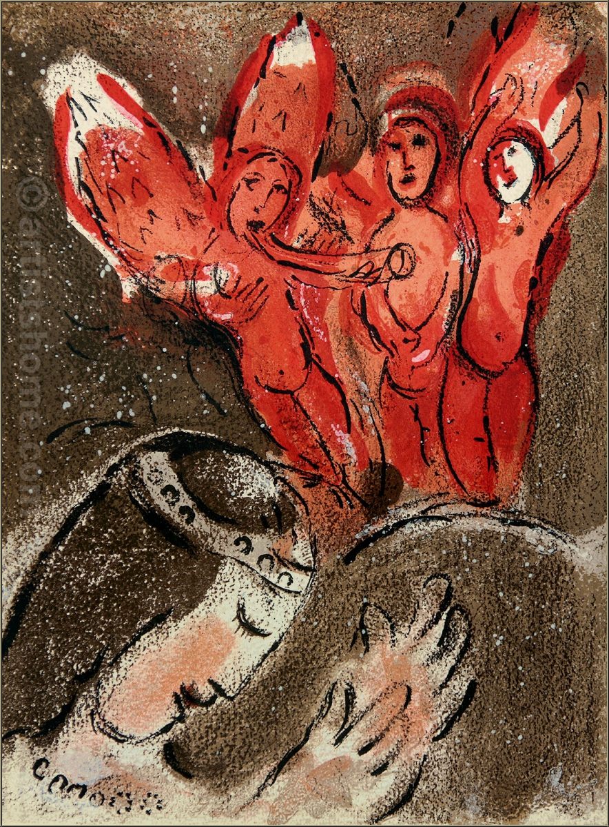 Marc Chagall: Sarah und die Engel, Original-Lithographie Bibel, 1960