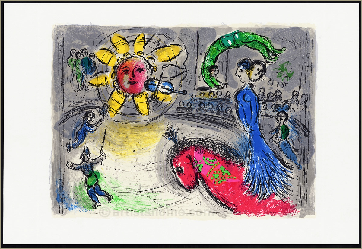 Chagall: Original-Lithographie 'Soleil au Cheval rouge', Sonne mit rotem Pferd und Kunstreiterin im Zirkus