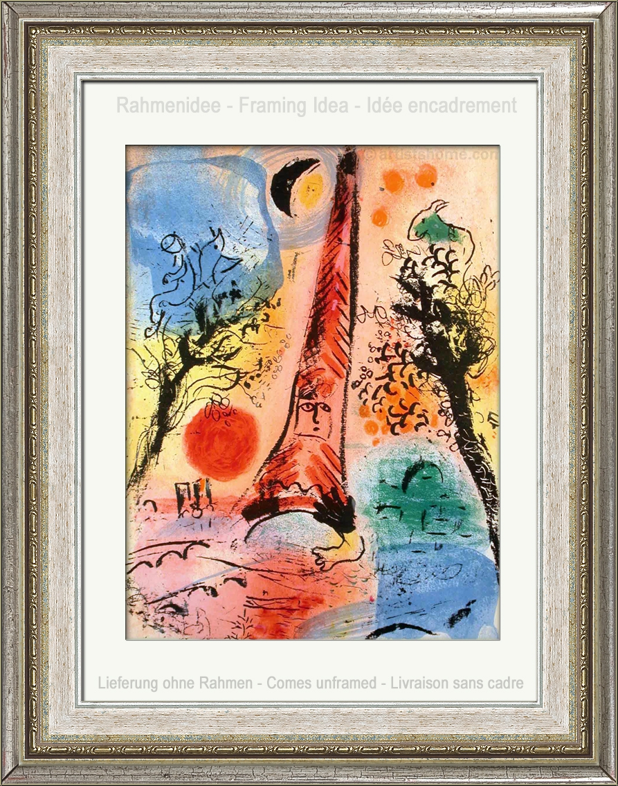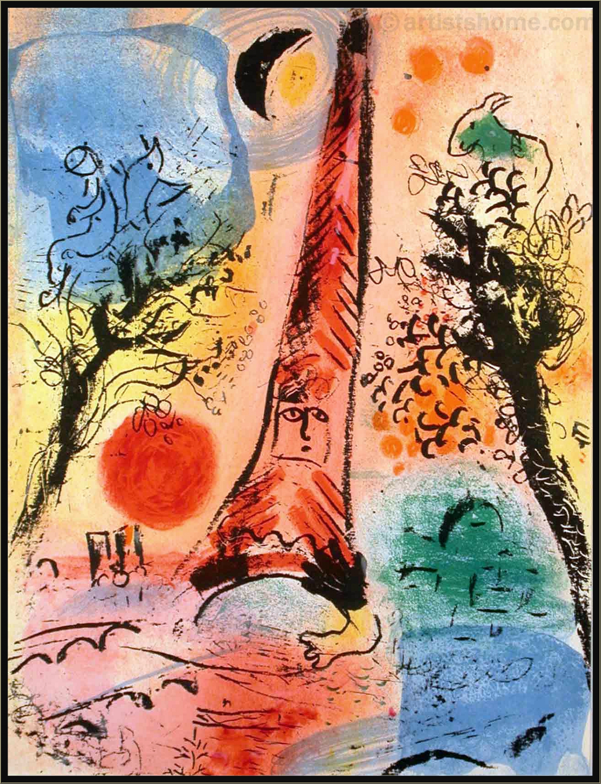 Marc Chagall: Vision von Paris, Eiffelturm 1960, Lithographie Mourlot