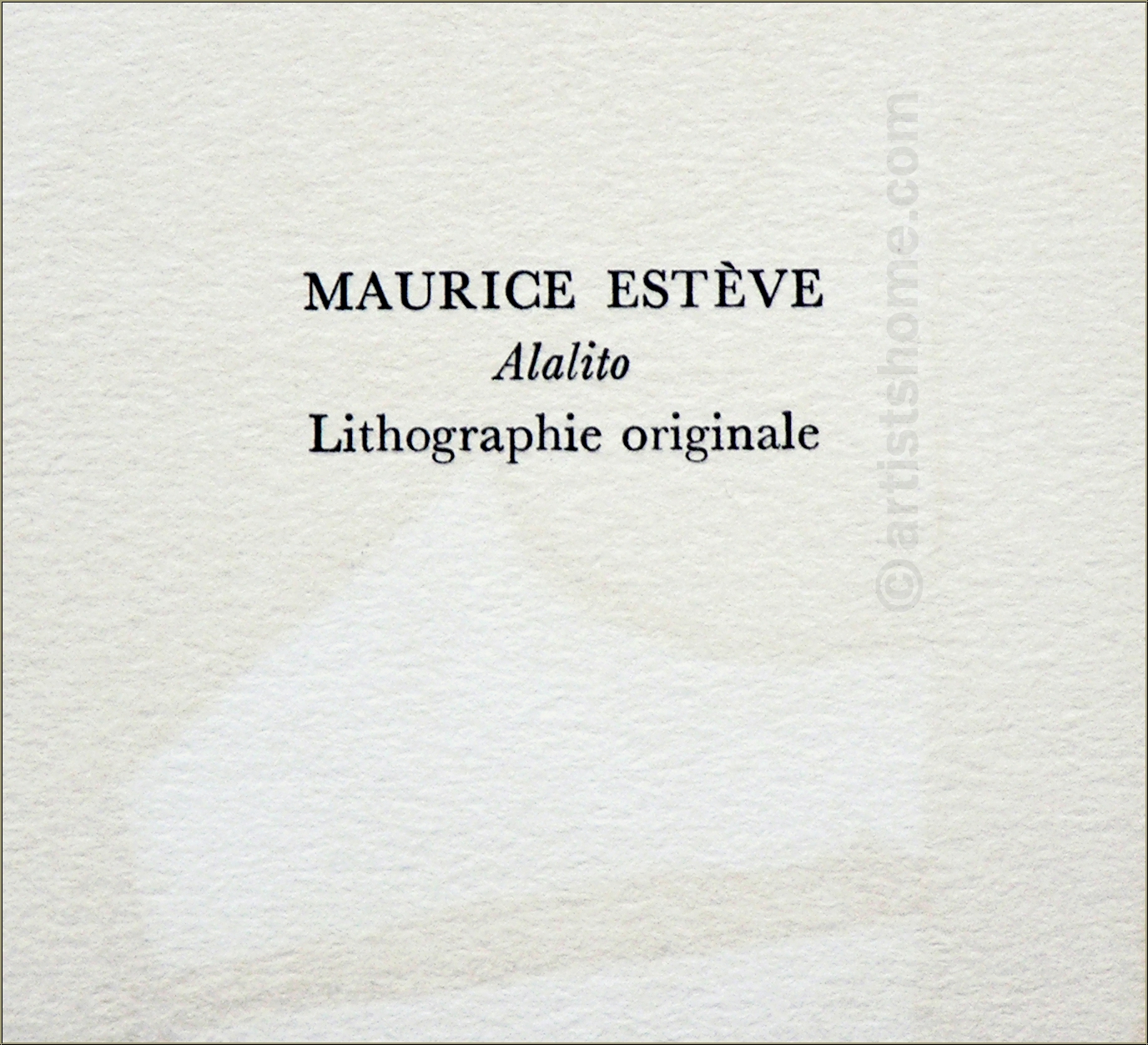 Auflage | Papier: Eines von nur 800 unsignierten Exemplaren auf Arches Bütten für die Vorzugsausgabe. Rückseitig typografisch bezeichnet: "Estève - Alalito - Lithographie originale"