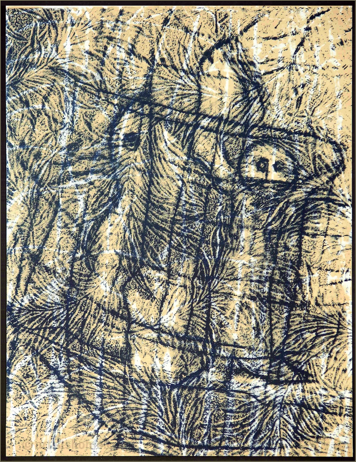 Dies ist eine von nur drei grafischen Arbeiten, die Max Ernst im gesamten Jahr 1958 anfertigte. Es muss eine aufregende Zeit für ihn gewesen sein, denn im gleichen Jahr tauschte der in Deutschland geborene Künstler die amerikanische gegen die französische Staatsbürgerschaft und kehrte - diesmal für immer - nach Frankreich zurück.