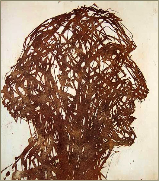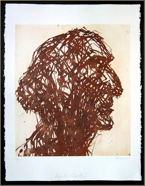 Max Uhlig: Kopf Marc Chagall siena - Große Radierung Bütten signiert