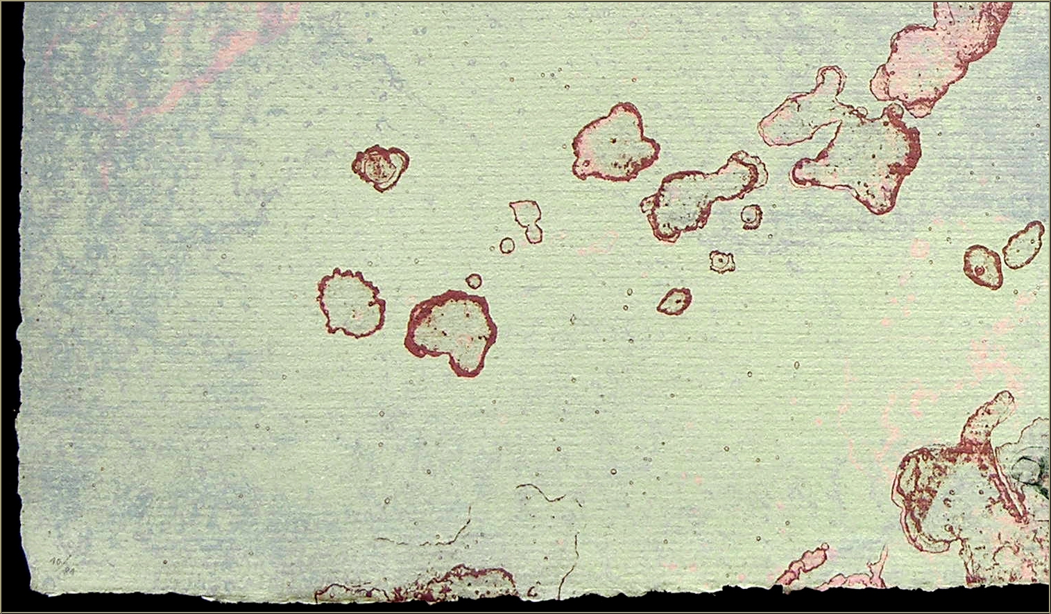 Papier: gedruckt auf blassgrünem, abgetöntem Fabriano-Bütten