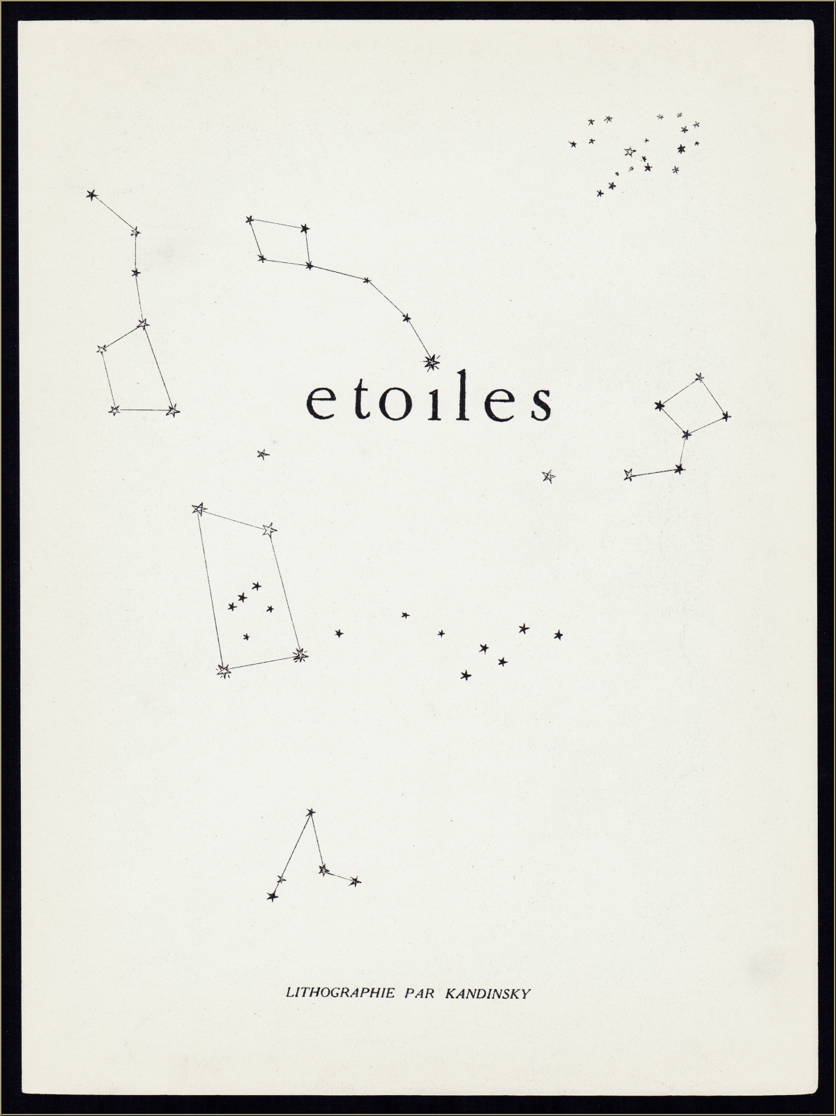 Nachdem sich die erste Ausgabe des avantgardistischen Kunstmagazins Verve mit den vier Elementen beschäftigt hatte, brachte die zweite Heftnummer im Jahr 1938 Werke zum Thema Himmelskörper, innerhalb eines Essays mit dem Titel "Die zwölf Wohnungen des Himmels". Zwei der vier beigebundenen Druckgrafiken hierfür wurden nach Gouachen aus dem gleichen Jahr bei Mourlot lithographiert. Während er seine "Comètes" im nachtschwarzen Universum darstellte, zeichnete Kandinsky seine "Étoiles" in eine abstrakte, blaue "Kandinsky-Galaxis" hinein, die an den Andromedanebel erinnert. Zentrum dieser Galaxis bildet folgerichtig ein schwarzer Kreis, oder besser: ein schwarzes Loch.