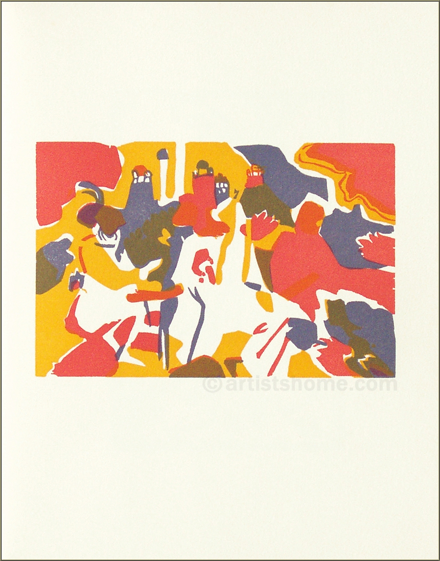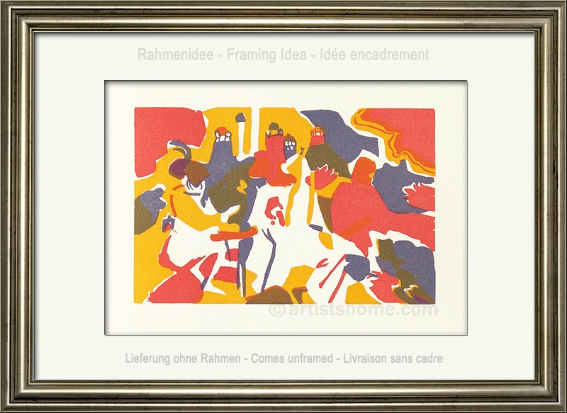 | Farbholzschnitt für das Portfolio "Klänge" auf cremefarbenem Arches Kupferdruckbütten Art.-Nr.: KAN-74-02 Lieferzeit: Preis: 125,00 € zzgl. Versand Vorkassepreis: 118,75 € Preis inkl. 5% Sofort-Skonto bei Bezahlung per Vorkasse Überweisung. Der reduzierte Preis wird Ihnen im Warenkorb angezeigt. Basis: Umrechnungskurse der EZB vom 29.12.2025 zzgl. Versand (inkl. MwSt., differenzbesteuert gem. §25a UStG, kein Ausweis der MwSt.) |